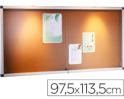 VITRINE D'INTERIEUR ALGOL NORME NF FACADE EN VERRE TREMPE FOND LIEGE CAPACITE 15 FEUILLES 980X1130MM